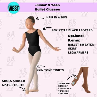If your dancer is enrolled in Acro, it's best if they wear a leotard or dance set without tights. Tights can make spotting difficult because they are slippery.