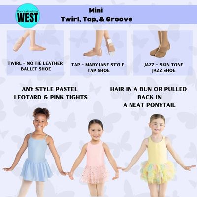 If your dancer is enrolled in a Twirl & Groove class be sure their tights are "convertible" meaning they can be worn over the foot and then pulled up for the Groove portion of class.